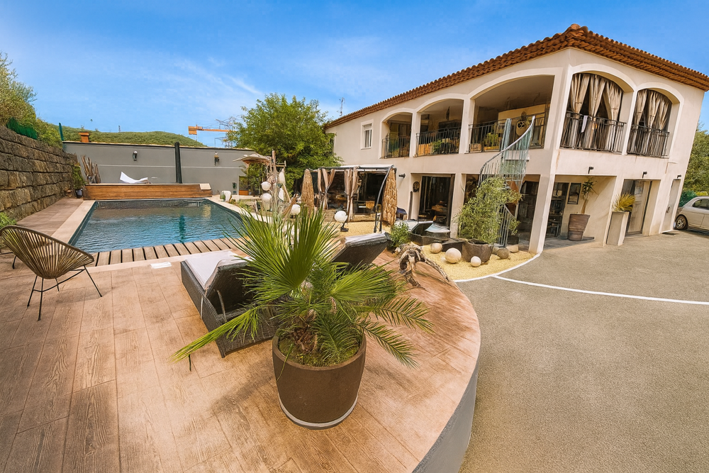 Nichée au calme dans un environnement résidentiel recherché, à proximité du charmant village de Flassans, à moins d'une heure des plages et de l'arrière pays varois, accès rapide avec l'autoroute A8.