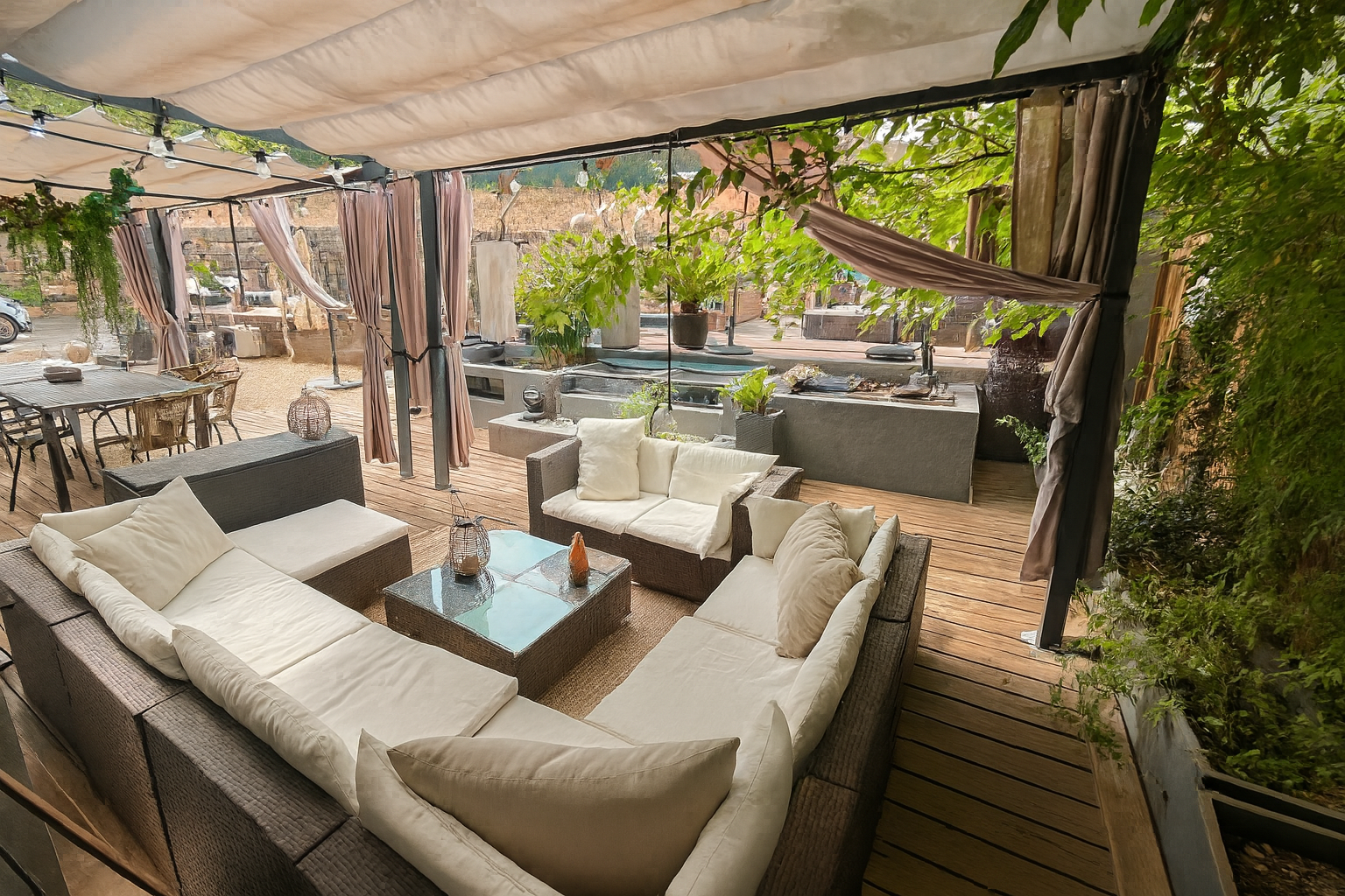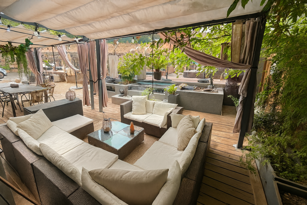 - De deux terrasses couvertes: une au rez de chaussée attenante au séjour, idéale pour les repas en famille et une immense terrasse de 65 m2 à l'étage, véritable espace de vie extérieur avec vue dégagée.