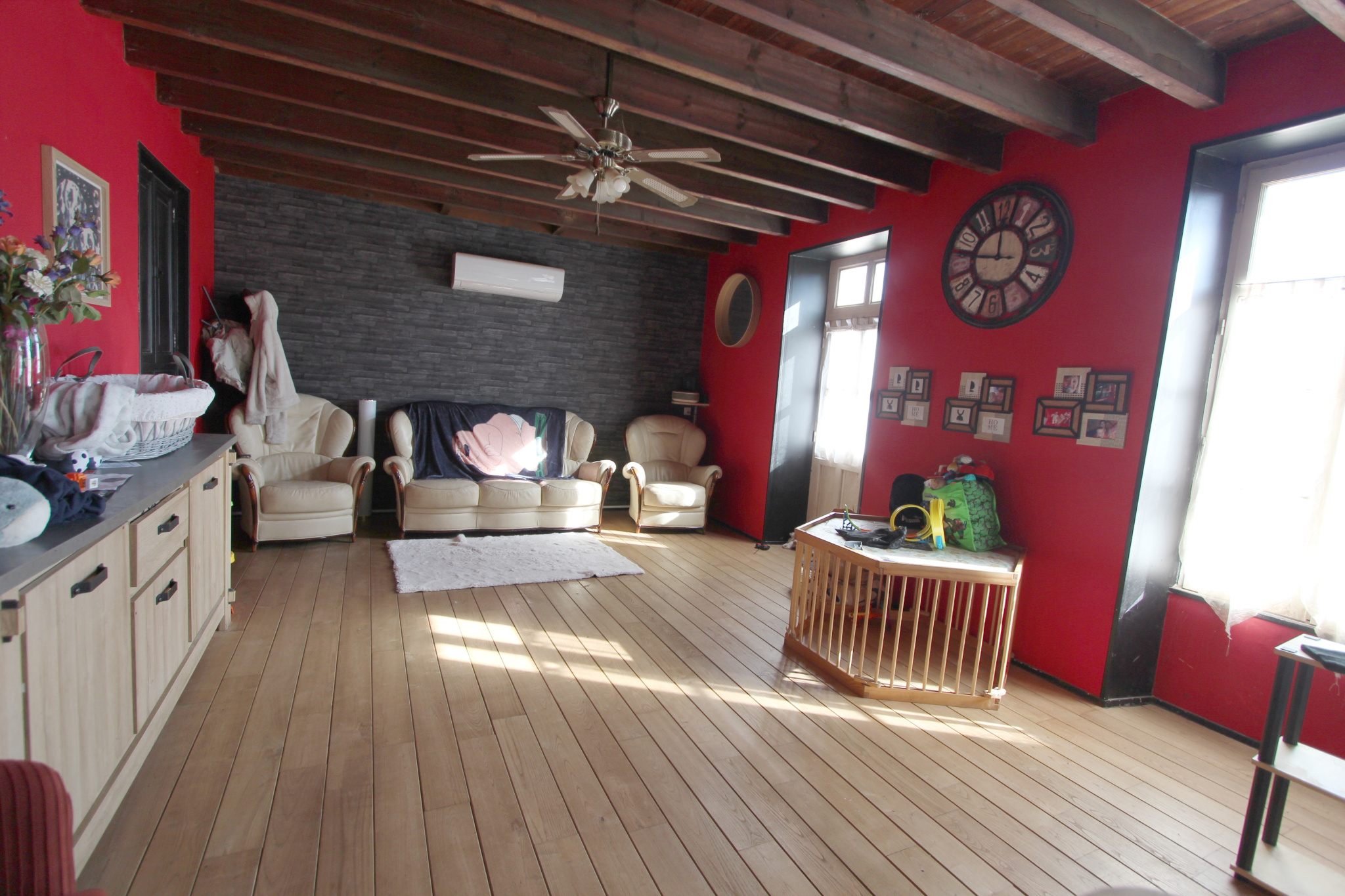 A l'étage parqueté : deux belles chambres et combles possible trois ou quatre chambres.