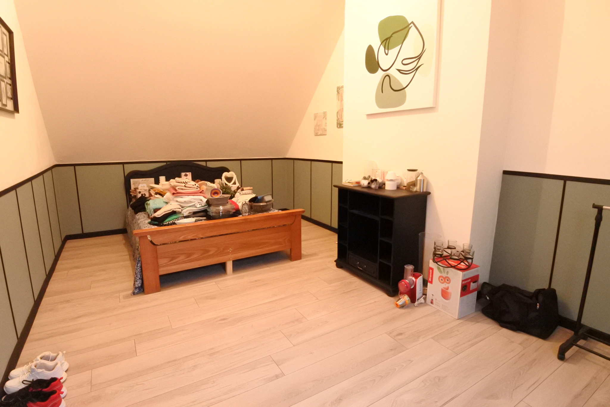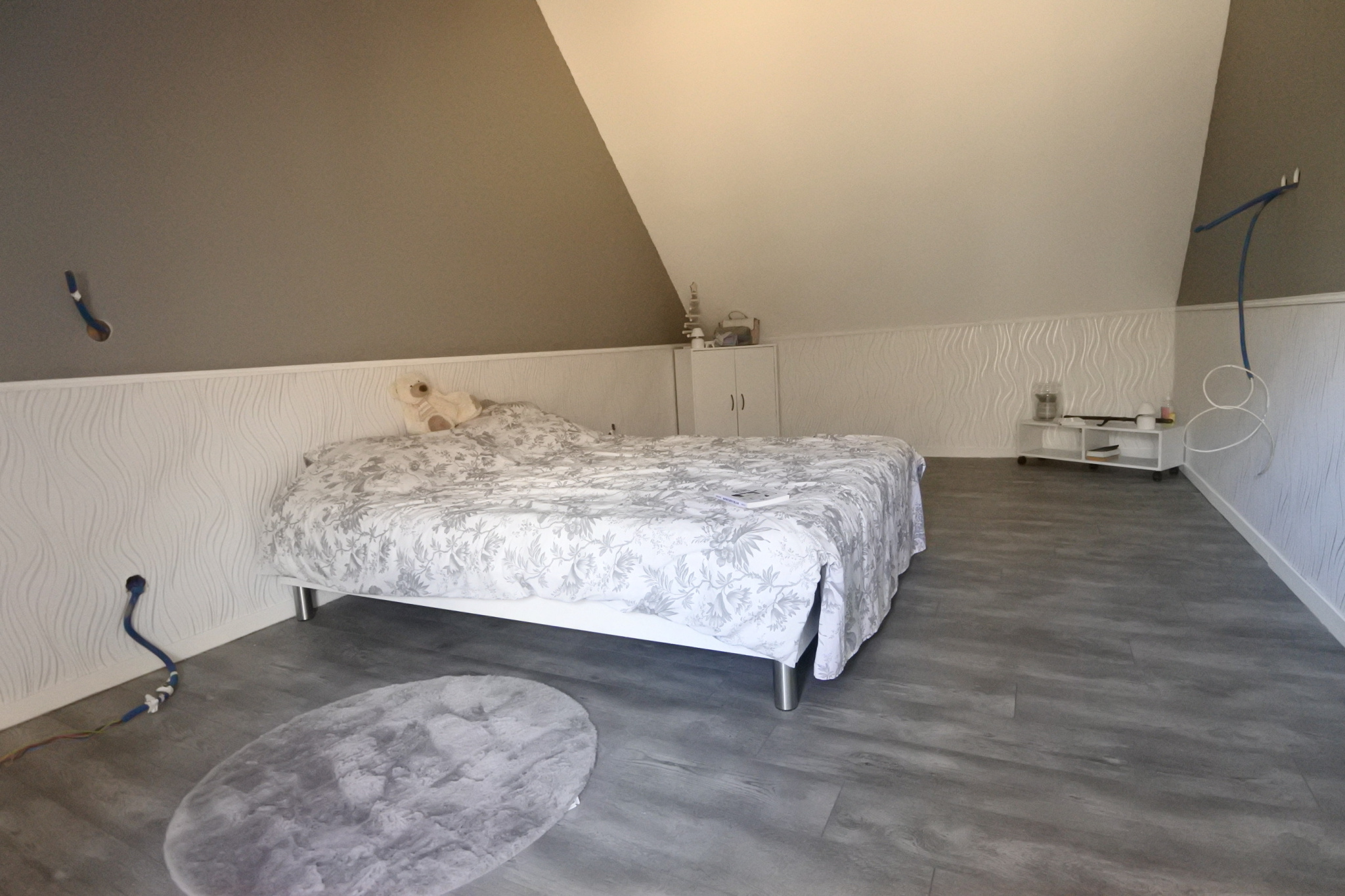A l'étage : plier desservant deux grandes chambres ( 17 et 18 m2) e une troisième de 11 m2.
