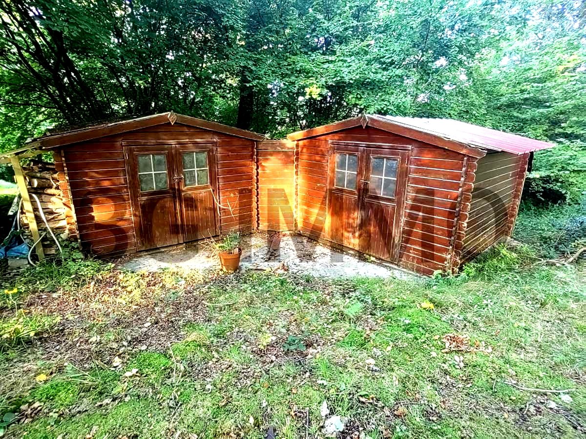 Grand parking sur la propriété, 2 chalets de jardin.