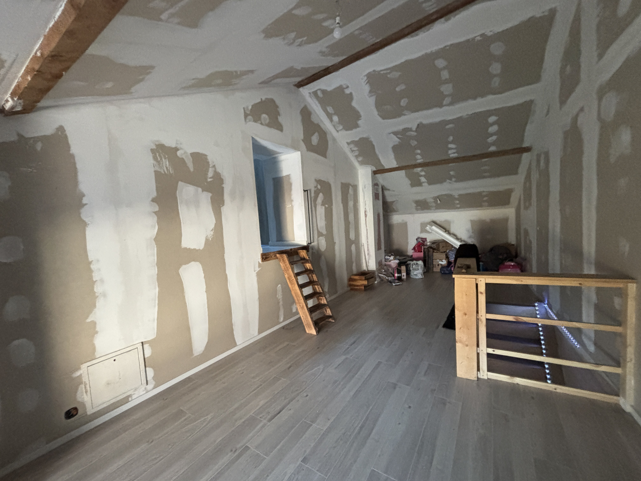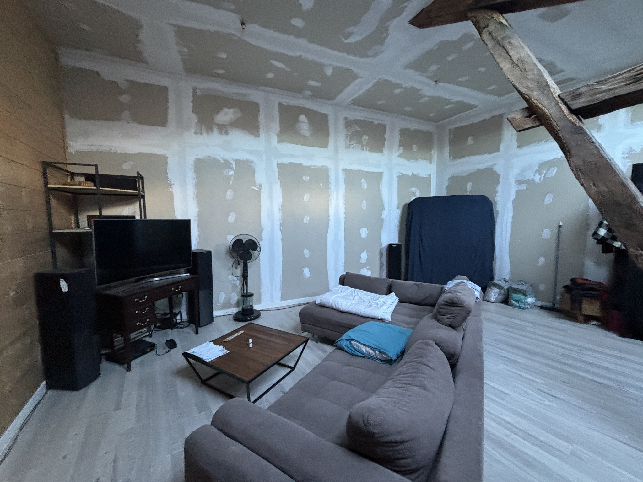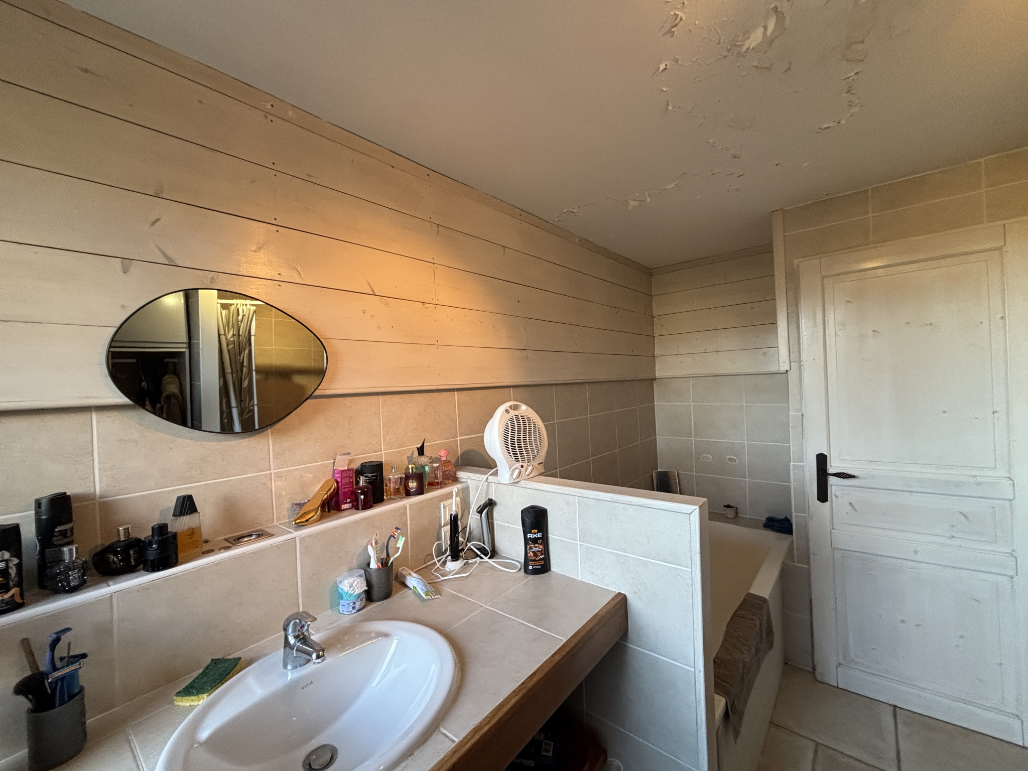Au rez-de-chaussée, vous disposez d'une salle de bain avec douche et beignoire et d'une grande chambre.