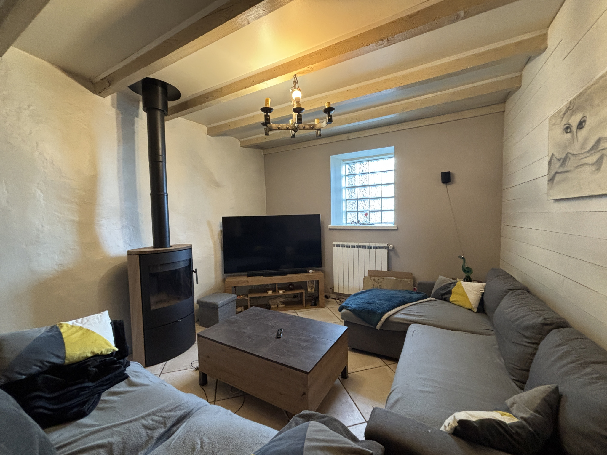 Depuis l'entrée principale, vous découvrirez une entrée accueillante avec son salon et son poêle à bois pour des moments chaleureux, agrémentée d'une spacieuse cuisine toute équipée complétée de son espace buanderie. La visite se poursuit par une salle d'eau, de deux chambres spacieuses et d'un WC