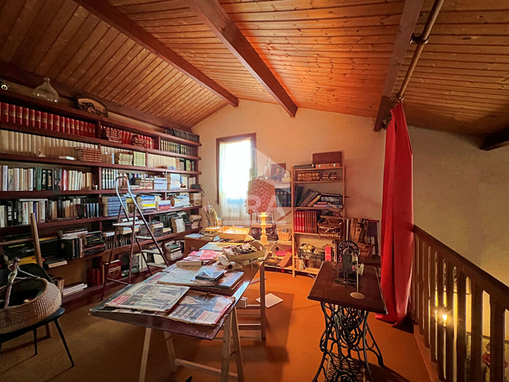 Elle se compose d'une vaste pièce de vie baignée de lumière, ouverte sur le jardin grâce à de grandes baies vitrées sans vis-à-vis, créant une atmosphère chaleureuse et conviviale. Vous disposerez également d'un coin bibliothèque intimiste en mezzanine pour savourer paisiblement vos meilleurs chefs-d'oeuvre littéraire.