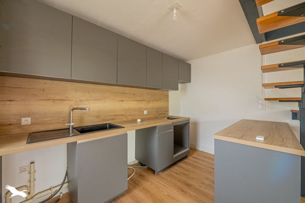 Elle comprend un séjour lumineux avec une cuisine ouverte et à l' étage deux chambres et une salle de bain.