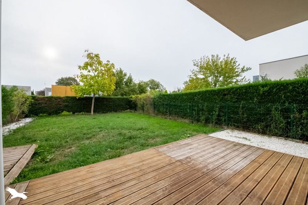 Un jardin clos avec une terrasse en bois et deux places de parking complètent ce bien.