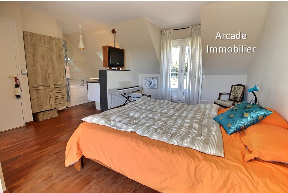 - à l' étage : Un palier desservant 4 chambres dont une suite parentale avec salle de bains, bureau, placards, 2 autres salles de douches, WC