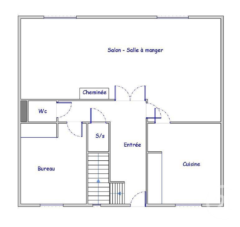 Située dans une rue calme et pavillonnaire, elle offre une entrée avec dégagement desservant un grand séjour de 35m² avec cheminée, une cuisine dînatoire, une chambre-bureau, des wc indépendants et des rangements.