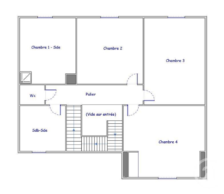 Au premier étage: palier donnant sur quatre belles chambres sous combles dont une avec douche, salle de bains et wc indépendants.