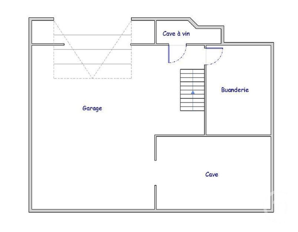 Sous-sol total de 82m² comprenant un garage pour deux véhicules, une cave, une buanderie et une cave à vin.