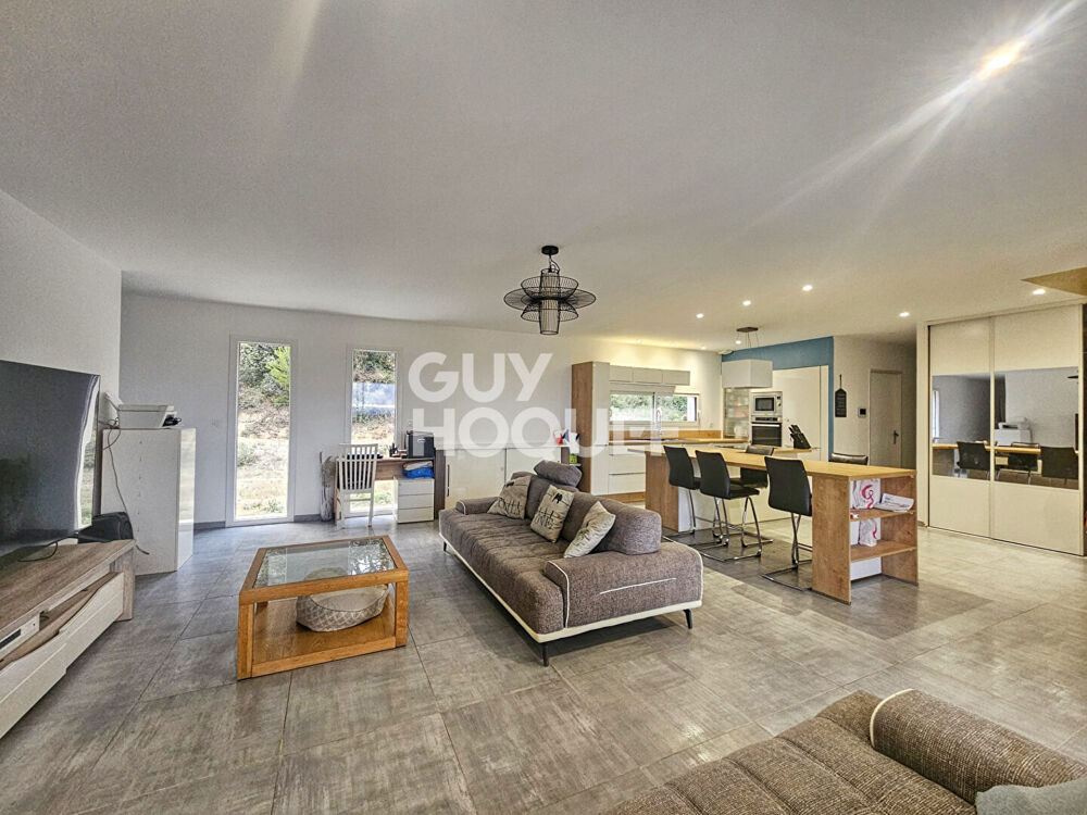 Découvrez cette superbe villa construite en 2020, nichée dans un environnement calme et privilégié, offrant 158 m² habitables de confort moderne sur une parcelle de 3000 m², divisible et entièrement clôturée. La maison, de plain-pied et 4 faces, se compose d'une spacieuse pièce de vie de plus de 55 m² avec cuisine ouverte, baignée de lumière et donnant accès à une grande terrasse couverte exposée plein sud, offrant une vue dégagée sur les Pyrénées. Côté nuit, vous trouverez quatre chambres ainsi qu'une suite parentale avec salle d'eau privative (douche à l'italienne) et dressing, complétées par une salle de bains familiale équipée de double vasques. Un cellier de 9 m² et un double garage de 40 m² viennent parfaire l'ensemble. A l'extérieur, place à la détente avec une magnifique piscine 10x5 au sel, dotée d'un système automatique de régulation du pH, et d'une cuisine d'été aménageable de 45 m² disposant d'un WC attenant, idéal pour le confort des beaux jours. Les prestations sont au rendez-vous : Climatisation gainable, Chauffe-eau thermodynamique, Portail électrique, Volets bois et volets roulants électriques, Adoucisseur d'eau Culligan avec entretien annuel, Vide sanitaire de 1,5 m, alimenté en électricité et offrant un vaste espace de stockage, Poulailler avec 5 poules pondeuses, Terrain divisible offrant de belles possibilités d'aménagement. Une maison moderne, spacieuse et parfaitement entretenue, prête à accueillir ses nouveaux propriétaires dans un cadre de vie paisible, entre vignes et montagnes. Prix de vente : 415 000 euros Cesseras ? Minervois Alicia CORTIJOS (EI) Agent Commercial - Numéro RSAC : - .
