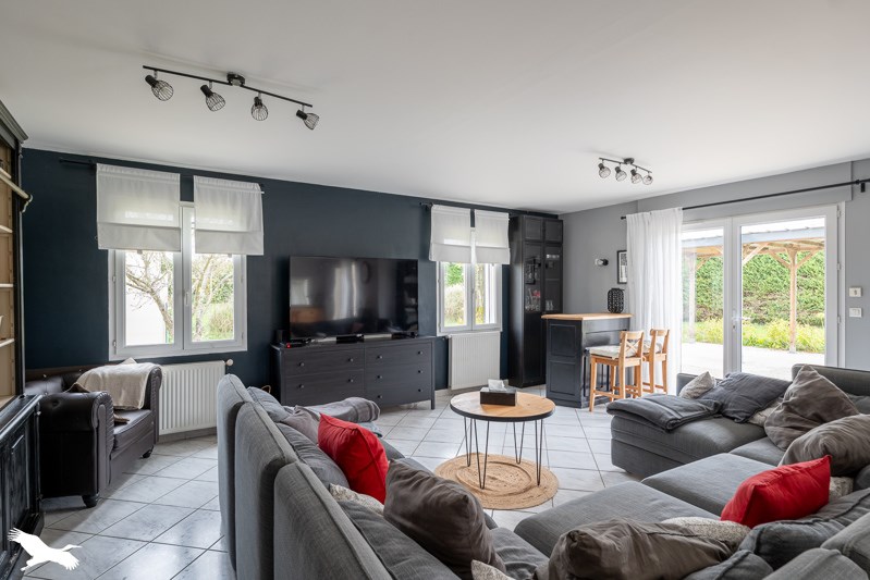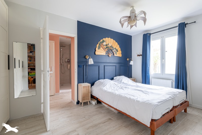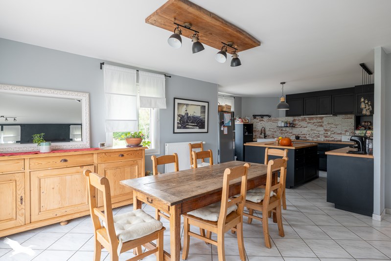 Maison de plain-pied de 5 chambres dont une suite parentale avec salle d'eau et wc privatifs-dressing, salle d'eau, salon/séjour/cuisine équipée en 'L' avec baies vitrées, aucune mitoyenneté, aucune travaux, terrain piscinable d'environ 2600 m², dépendances et terrasse