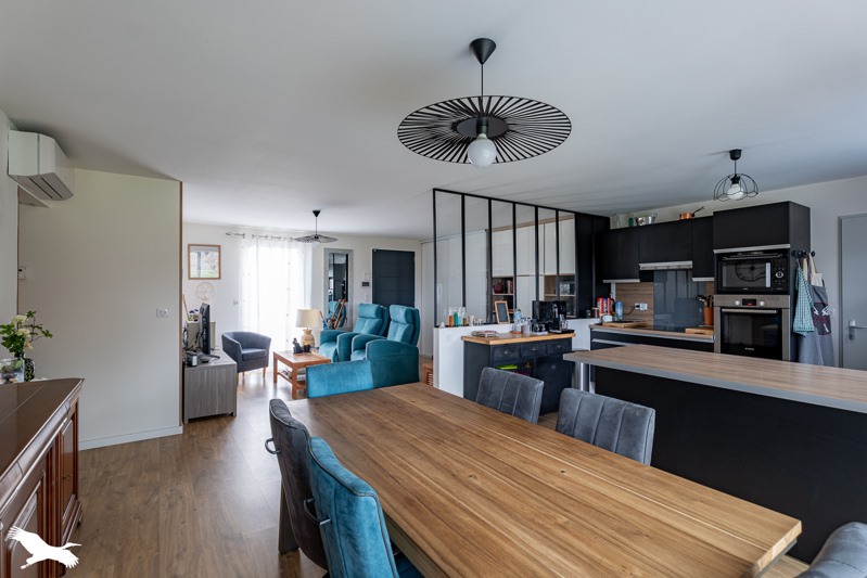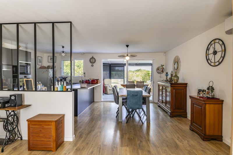 Maison de moins 10 ans, DPE : B, sans aucun travaux composée d'un salon avec placards/séjour/cuisine aménagée et équipée, dégagement, 3 chambres, salle d'eau, wc, véranda, garage, carport abri de jardin.