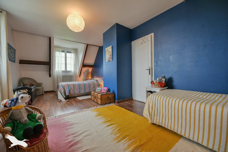 A l'étage : pièce palière, deux chambres, salle de bains, placard.