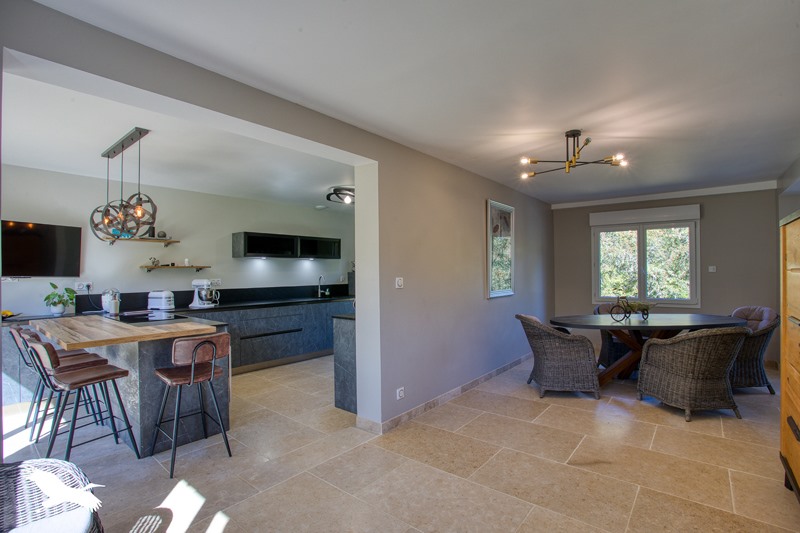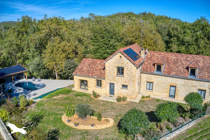Dans un environnement privilégié sur 1.8 Ha de terrain avec un bel étang aménagé, Périgourdine en pierre totalement rénovée avec goût et qualité.