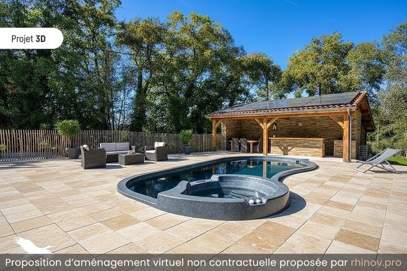 Jardin boisé avec SPA, piscine pool house et Local technique.