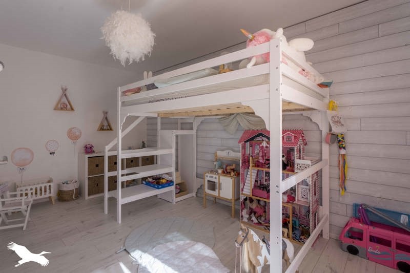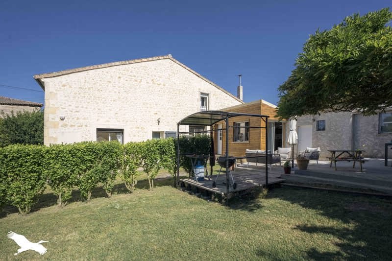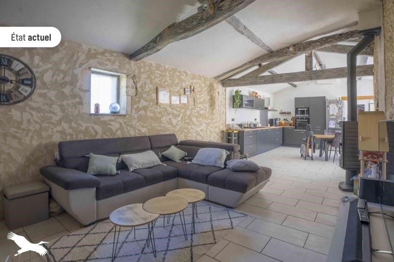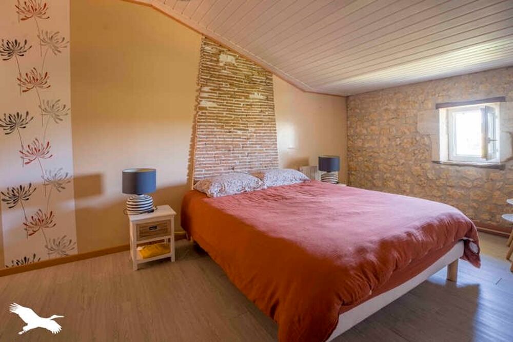 Cette maison charentaise de 160 m² composée d'une cuisine aménagée-équipée ouverte sur séjour avec un insert, de trois chambres et une suite parentale (avec une avec salle d'eau, dressing et bureau), d'une salle de bains, wc et d'un cellier.