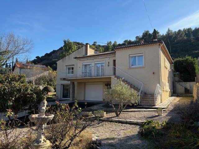 Exclusivement chez IMMOBIS, une villa de 240 m2 environ.Cette construction traditionnelle des années 1970, de type contemporain, est édifiée en R+1, sur un terrain clos de 1500 m2 arboré de diverses essences méditerranéennes.