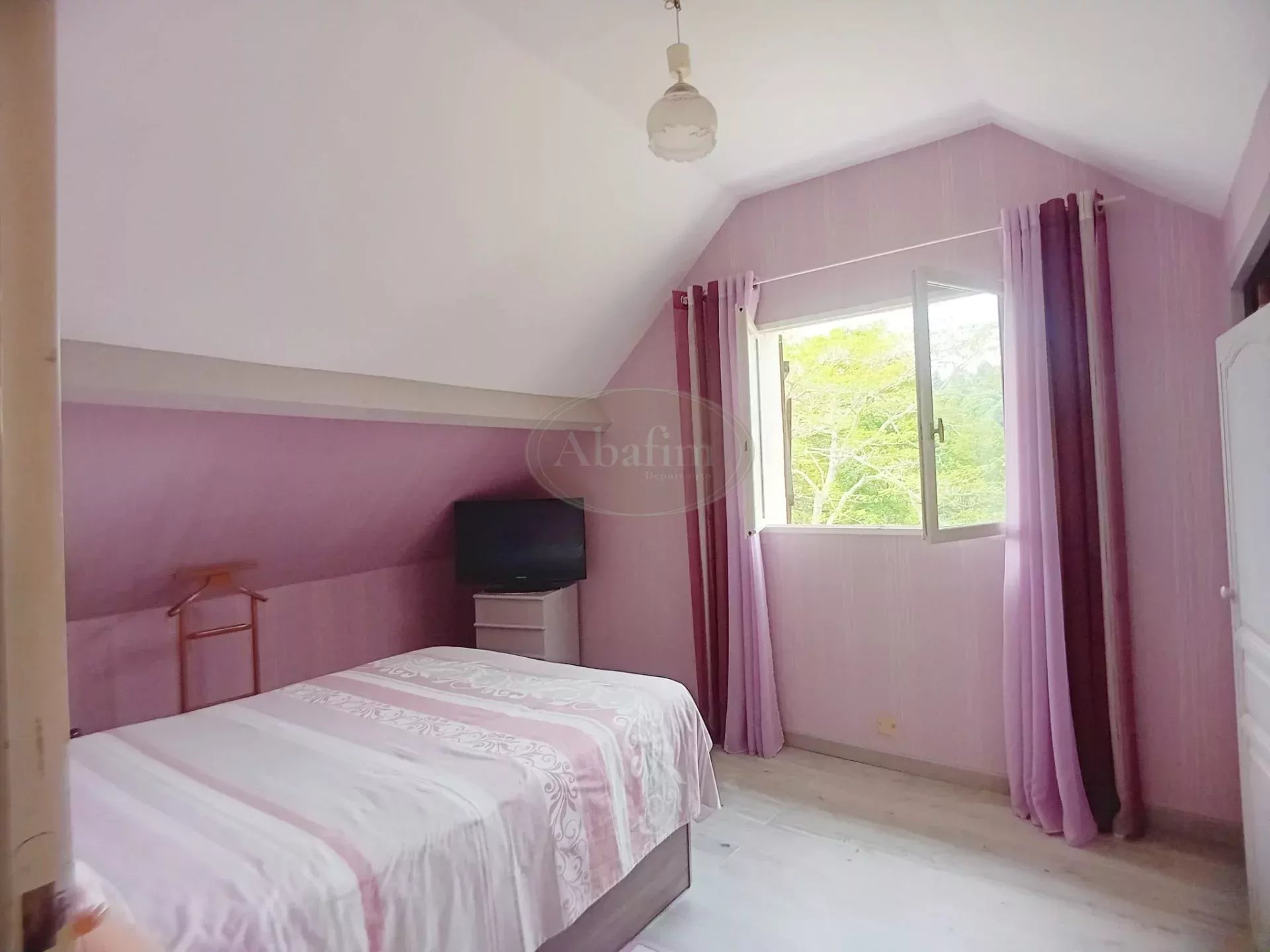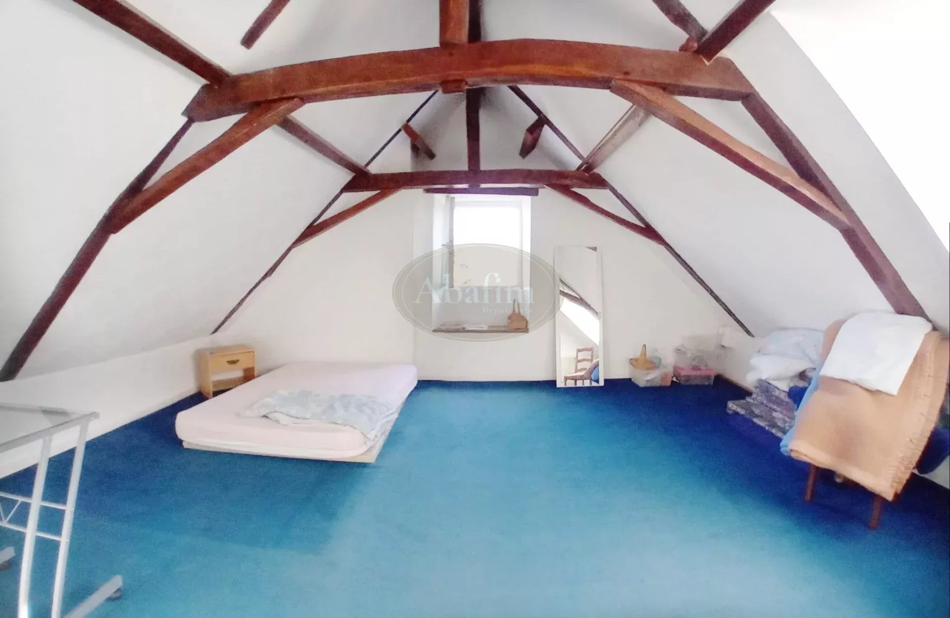 La toiture est en tuiles, la charpente traditionnelle, les menuiseries sont en PVC double vitrage, sauf dans la cuisine où subsiste une fenêtre en bois simple vitrage.