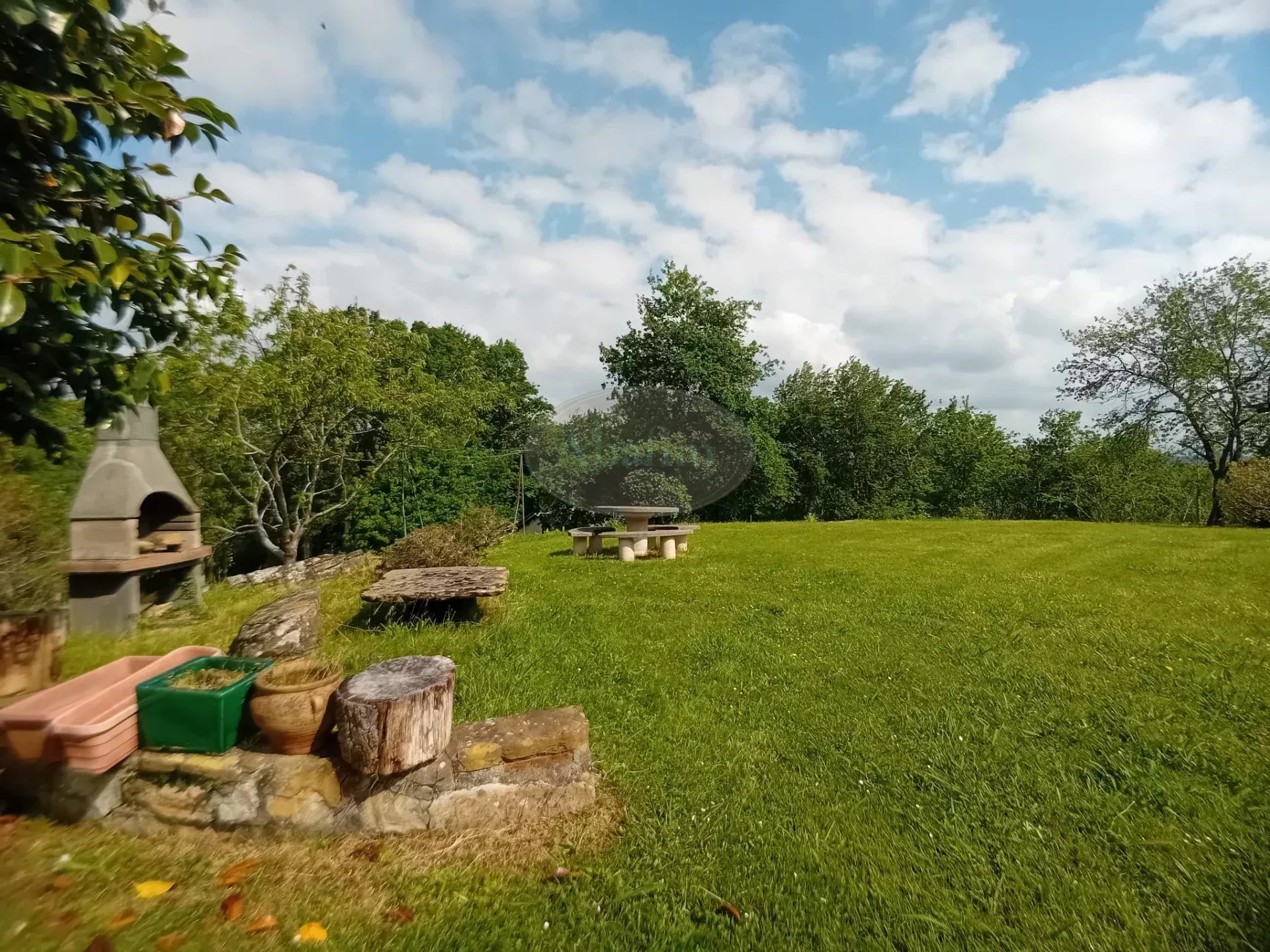 Les extérieurs (1ha17) permettent de profiter pleinement du cadre : une partie plane autour de la maison, idéale pour les repas en plein air, une aire de barbecue, un verger en pente douce, et un espace en pente offrant du bois à exploiter.