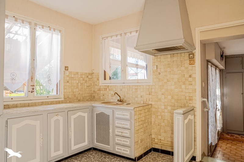 Une cuisine avec cellier, un salon séjour lumineux avec cheminée et un jardin d'environ 600m² sans vis-à-vis complètent les prestations de ce biens.
