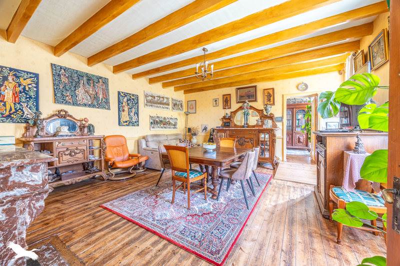 Maison en pierre avec du cachet : comprend cuisine dinatoire, salle à manger, bureau, WC, salon et buanderie.