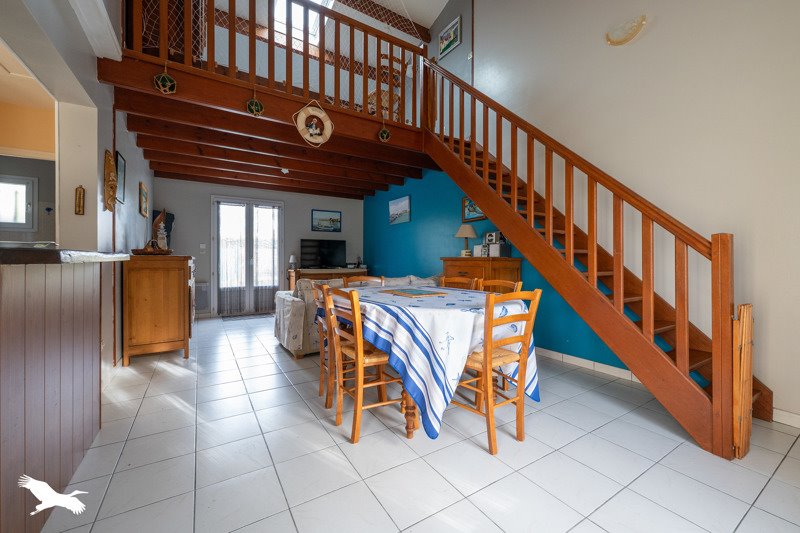 Dans un environnement calme, à proximité du marché et des plages, maison comprenant séjour coin cuisine, une chambre de plain pied, une salle d'eau, wc séparé, une mezzanine pouvant faire office de seconde chambre et un garage .