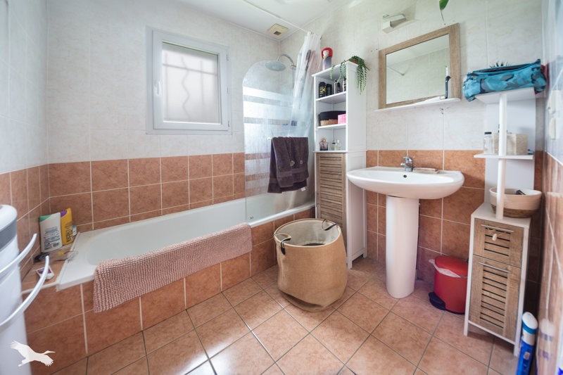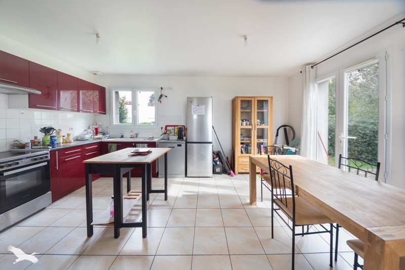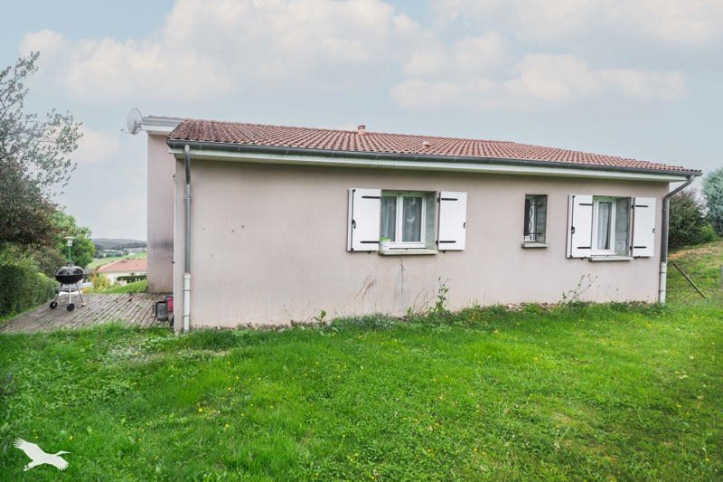 Sur sous sol complet offrant un garage et une buanderie, elle se compose d'un salon ouvert sur la cuisine, trois chambres, une salle de bain et un WC séparé.
