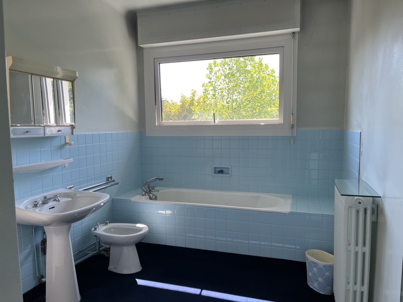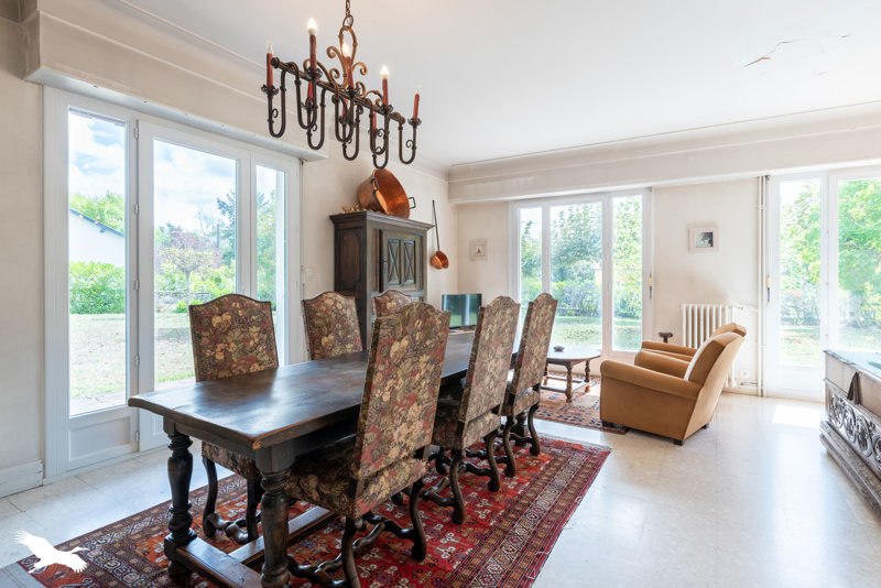 Elle dispose de cinq chambres avec point d?eau, d?un vaste salon traversant de 55 m², d?une cuisine séparée et d?un garage spacieux de 50 m².