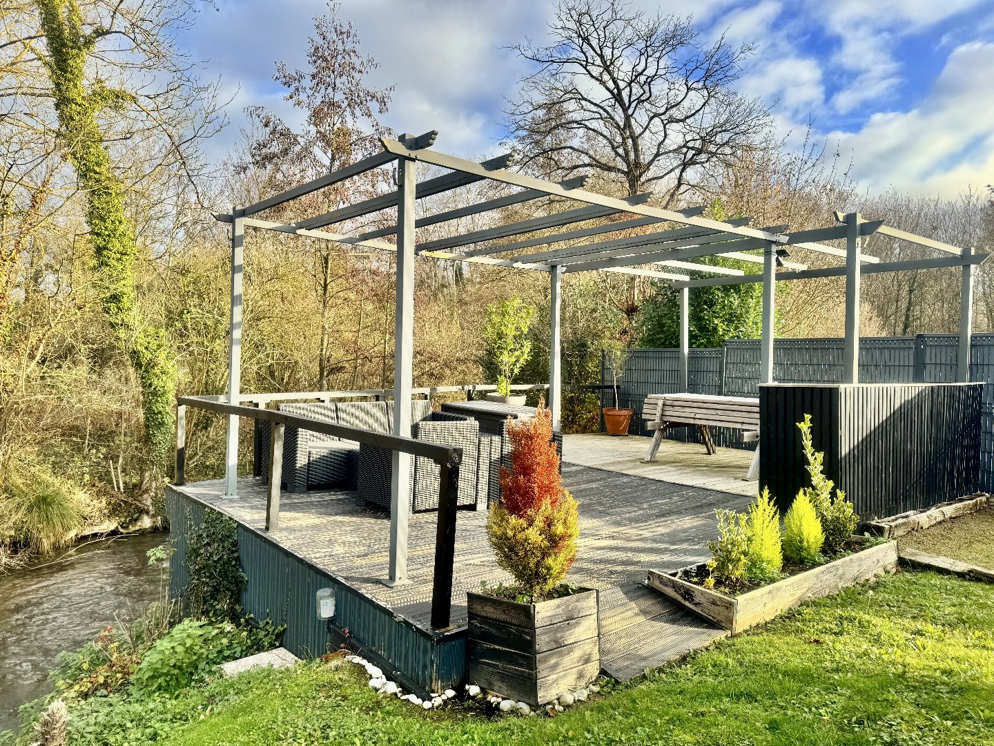 Au fond du jardin, vous serez séduit par ce joli cours d'eau avec terrasse et braséro pour vos moments agréables entre amis.
