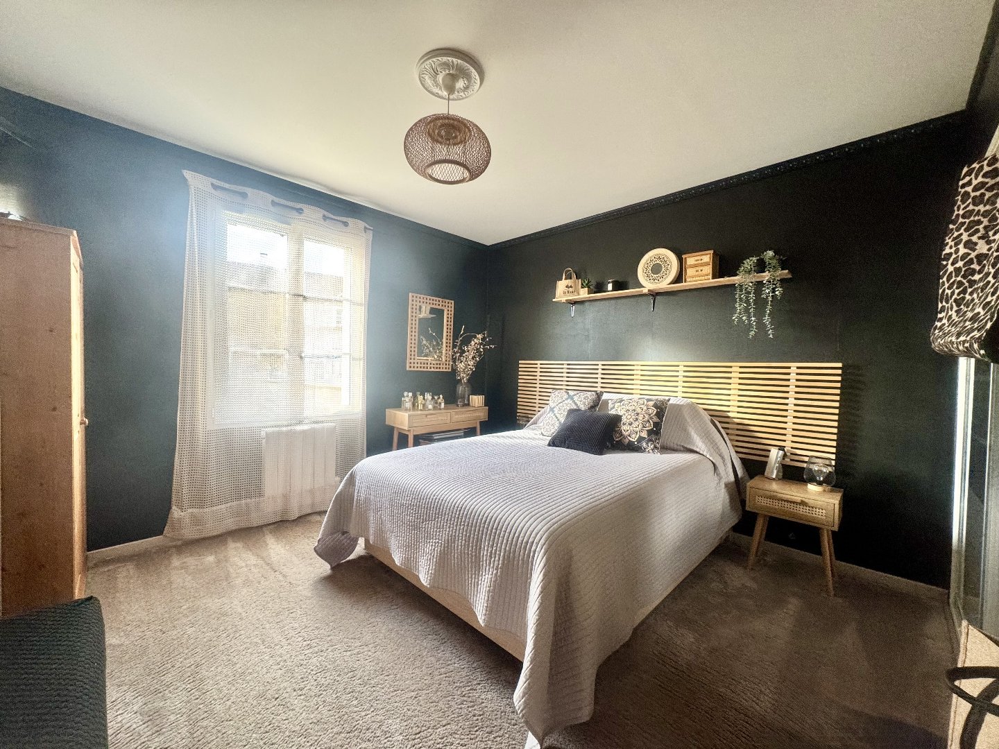 Le séjour traversant offre une atmosphère chaleureuse et conviviale.