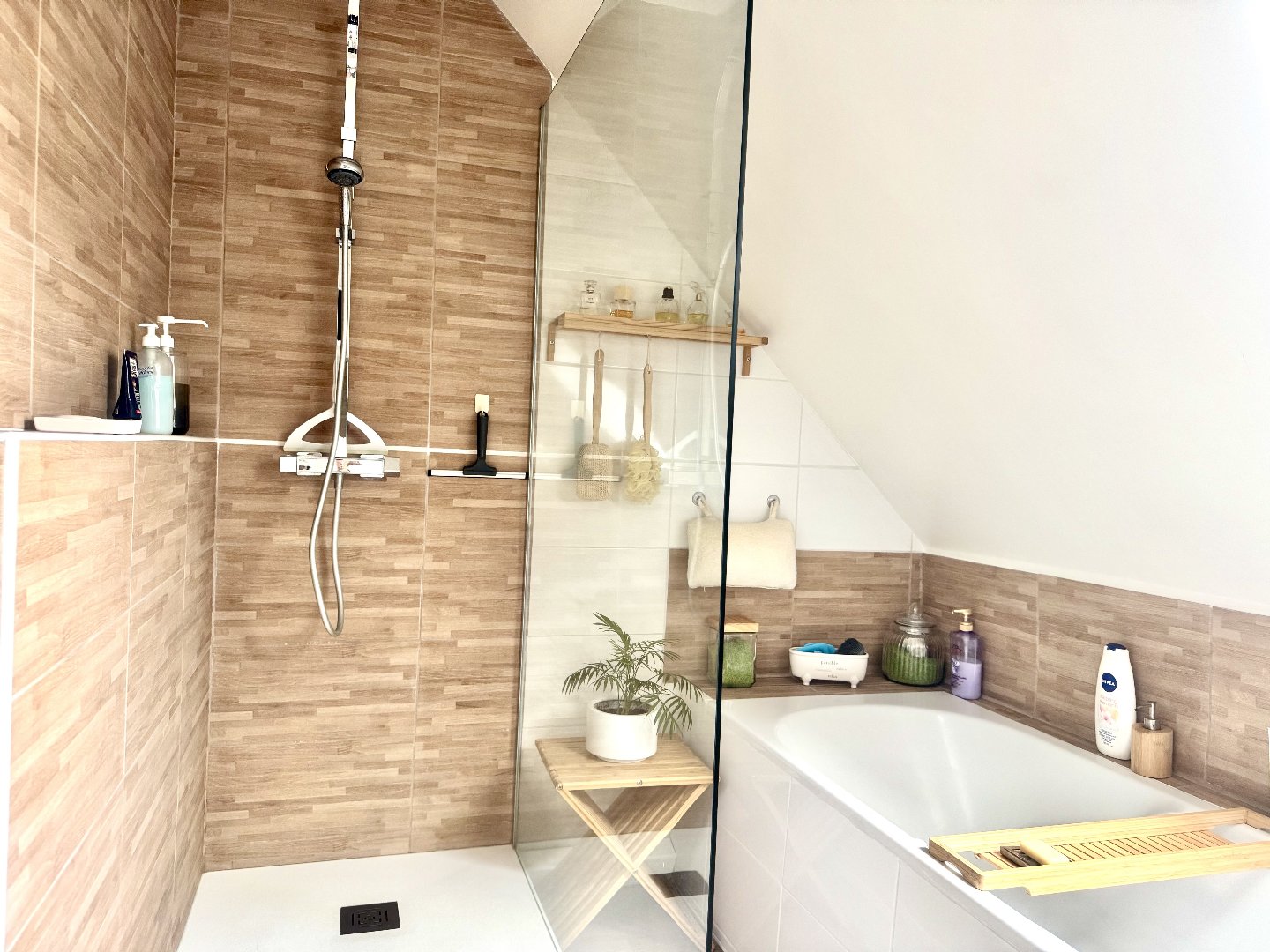 Le tout carrelé et chauffé.