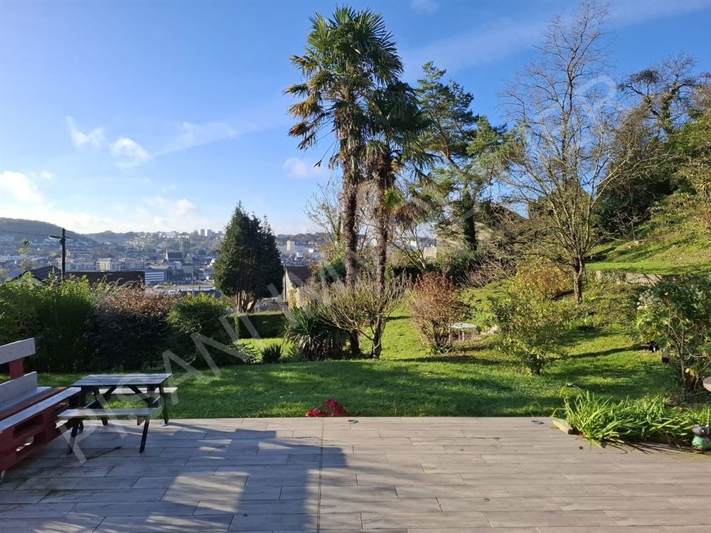 FECAMP - BOURG BAUDOIN. Jolie maison vivable de plain-pied dans un écrin de verdure avec belle vue dégagée. Elle se compose au RDC d'une belle pièce de vie, avec cheminée, de 44m² environ, une cuisine aménagée et équipée, une véranda baignée de soleil, 3 chambres, salle d'eau, WC. A l'étage : une grande pièce mansardée faisant office de chambre et de salle de jeux. Possibilité de créer une autre salle de bains. Sous-sol complet spacieux avec garage deux véhicules, buanderie, bureau, cave à vin, chaufferie, WC. A l'extérieur : une belle terrasse, un jardin arboré de 2500m² et trois places de parking. Bien rare sur ce secteur, à voir rapidement ! CL
