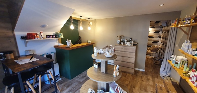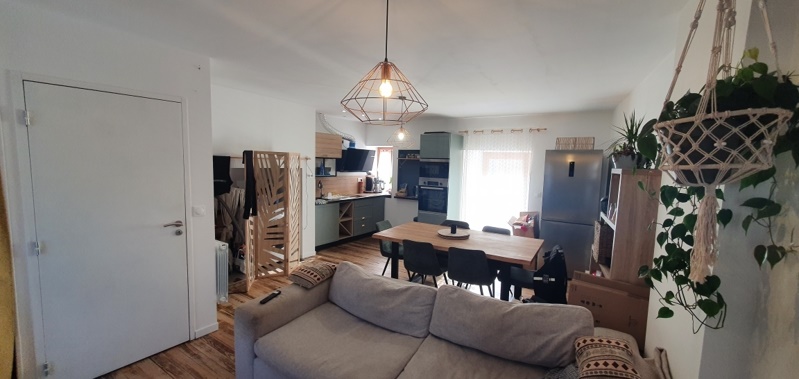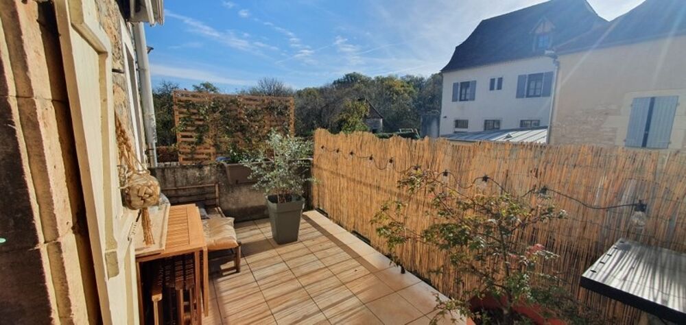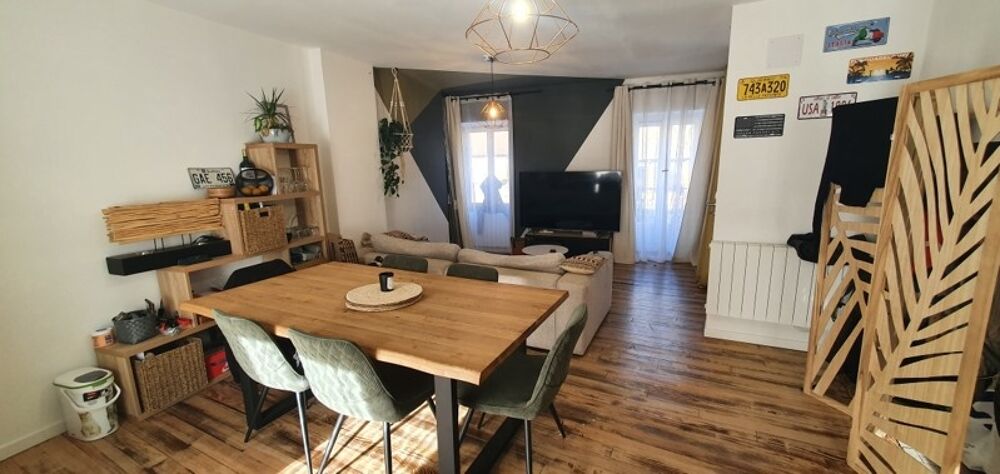 Au-dessus, appartement rénové sur 2 niveaux avec terrasse, une belle pièce de vie, deux chambres, une salle d'eau et un WC.