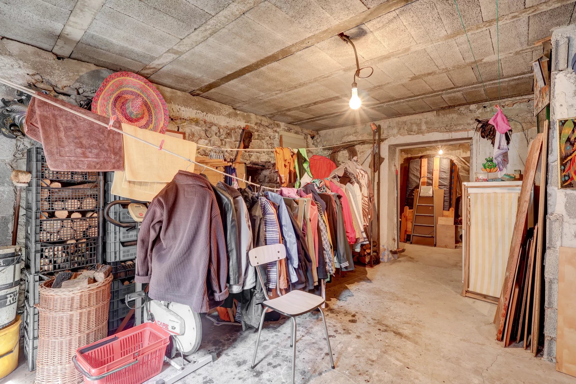 Au premier étage, un vaste espace d'environ 87 m², aujourd'hui utilisé comme zone de stockage et atelier, peut être entièrement repensé selon vos envies.