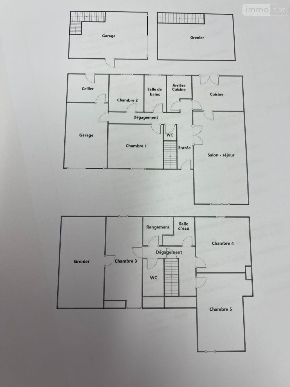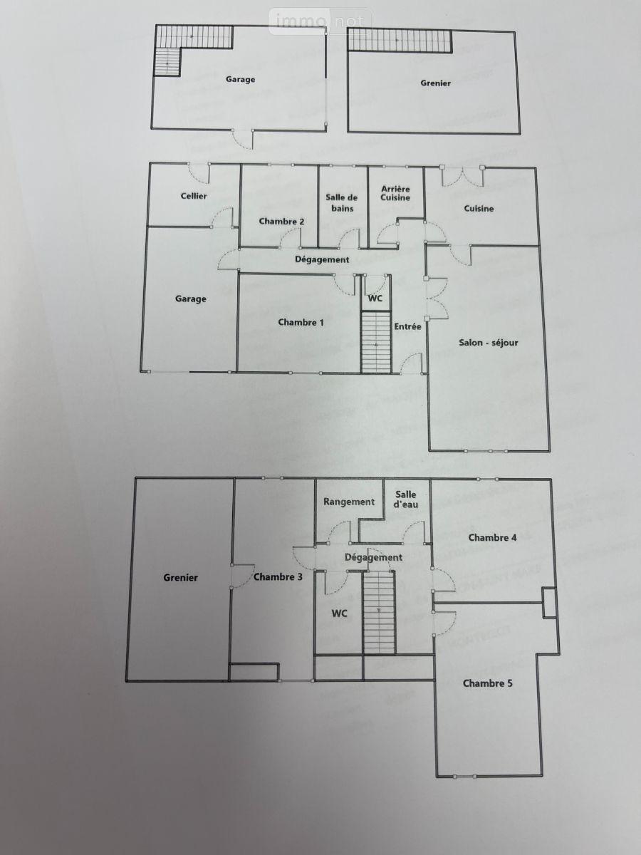 A Vendre à Le Grand-Lucé (72150) à env. 25 kms sud le mans) : Un PAVILLON disposant d''une surface habitable de 129 m² (pour une emprise au sol de 144,28m²) et de 5 chambres (dont deux de plain-pied). Proche de toutes commodités, ce pavillon possède un terrain de 801m² et deux garages ( dont un possédant un accès indépendant sur le terrain) . L'intérieur de la maison offre des espaces de vie spacieux et sa configuration permet de répondre aux attentes des futurs propriétaires recherchant un bien pour leur famille . MAISON COMPRENANT DE PLAIN-PIED : Entrée (4m²), Salon/salle à manger (26,39m²) avec cheminée insert , et accès cuisine (11,06m²) aménagée, et accès Terrasse , Arrière-cuisine (4,72m²), Dégagement, deux Chambres indépendantes (12,60 et 7,84m²), Salle de bains (5,03m²) avec baignoire, douche,, WC (indépendant). Accès au garage (porte à ouverture manuelle) avec pièce à usage de Réserve/bucher. EN ETAGE: : Palier desservant trois chambres indépendantes ( 16,27m², 14,69m² et 17,23 m² au sol ). Une chambre donne accès à une pièce à usage de grenier (aménagements réalisés permettant de finaliser une pièce de vie supplémentaire). Salle d'eau (3,74m² au sol) avec douche et vasque, WC (indépendant),, Rangement (3,95m² au sol). EN EXTERIEUR : second Garage (emprise au sol environ 20m²) avec mezzanine au dessus (accès indépendant et place de stationnement. Terrain clos et jardin ( avec système d''arrosage relié par surpresseur à l''un des deux puits présents sur la propriété ) . CONFORT : Assainissement collectif. Huisseries bois double vitrages. Chauffage :cheminée avec insert + complément par radiateurs électriques. Le Grand-Lucé, situé en Sarthe (72), offre divers points d''intérêt. Parmi les commodités, on trouve des écoles, des commerces de proximité, ainsi que des infrastructures sportives. La commune est desservie par des réseaux de transport facilitant l''accès aux grandes villes des environs. Le prix de vente de cette maison est de 178400 euros. Pour plus d''informations, n''hésitez pas à contacter notre office notarial pour obtenir de plus amples renseignements sur cette maison à vendre à Le Grand-Lucé. Retrouvez toutes nos annonces sur le site internet de notre étude : www.arn.notaires.fr.