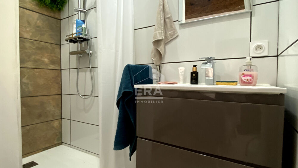 Au premier étage, la maison propose une chambre, un salon lumineux ouvert sur une cuisine à aménager selon vos envies, ainsi qu'une salle d'eau moderne avec double douche et WC. Ce niveau bénéficie également d'un accès direct à une terrasse agréable et bien exposée.
