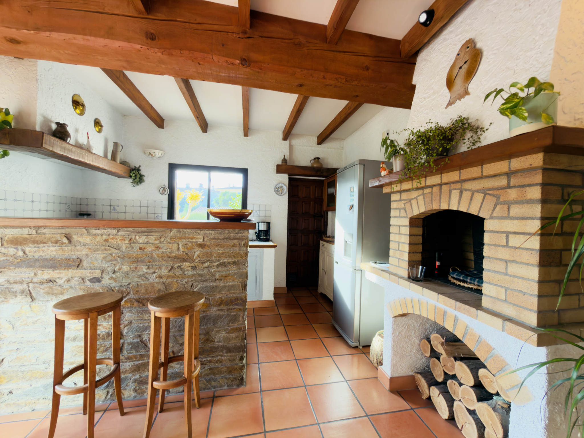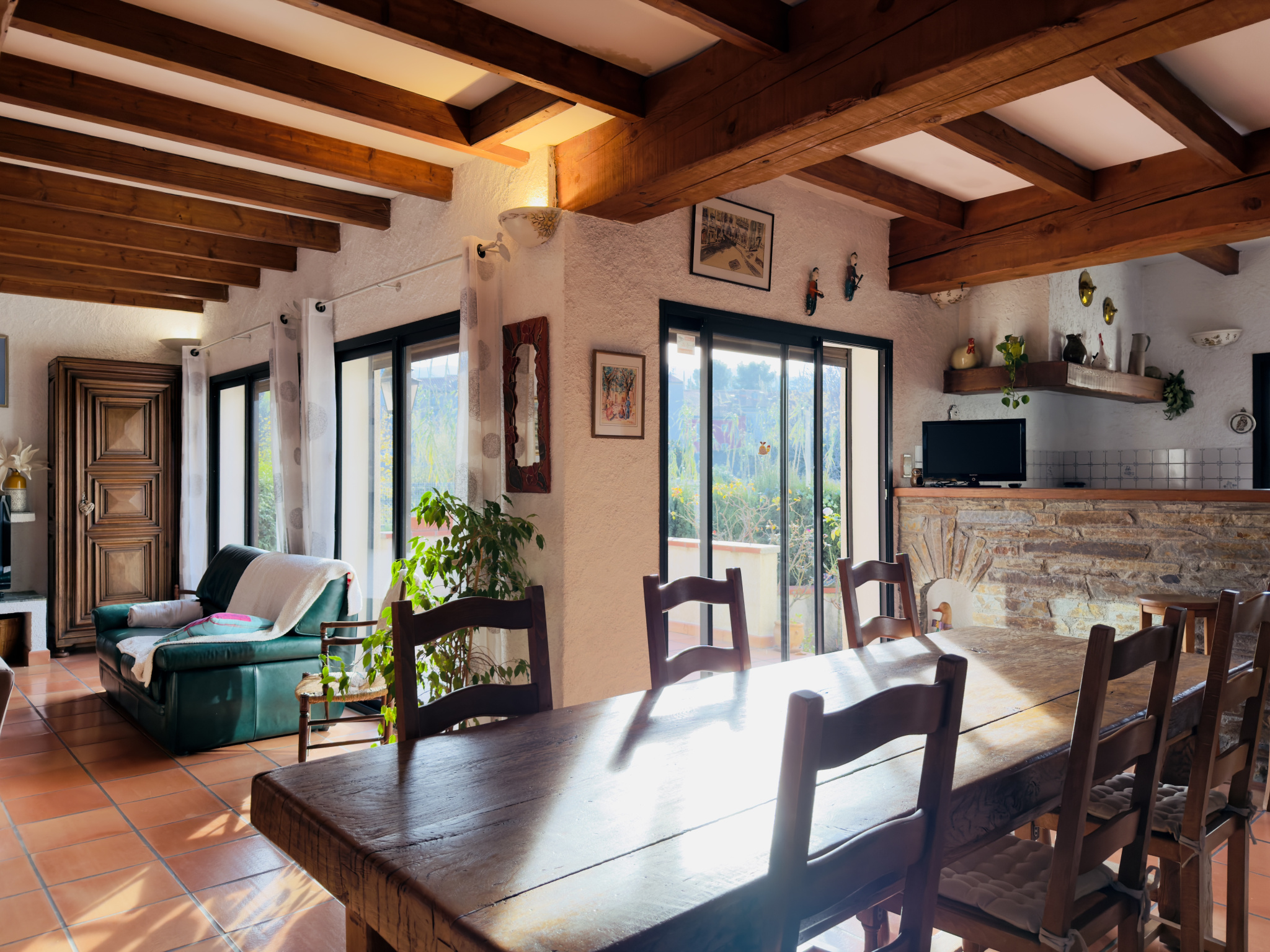 De plus elle comporte certaines prestations comme la climatisation réversible, une cheminée, des stores banes électrique, deux portes de garage motorisées, double vitrage, store roulant électrique, …