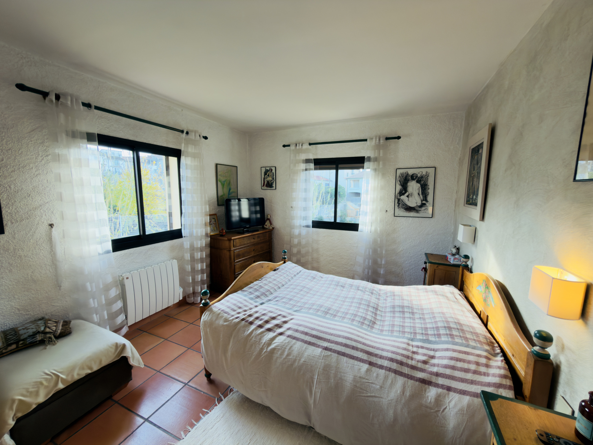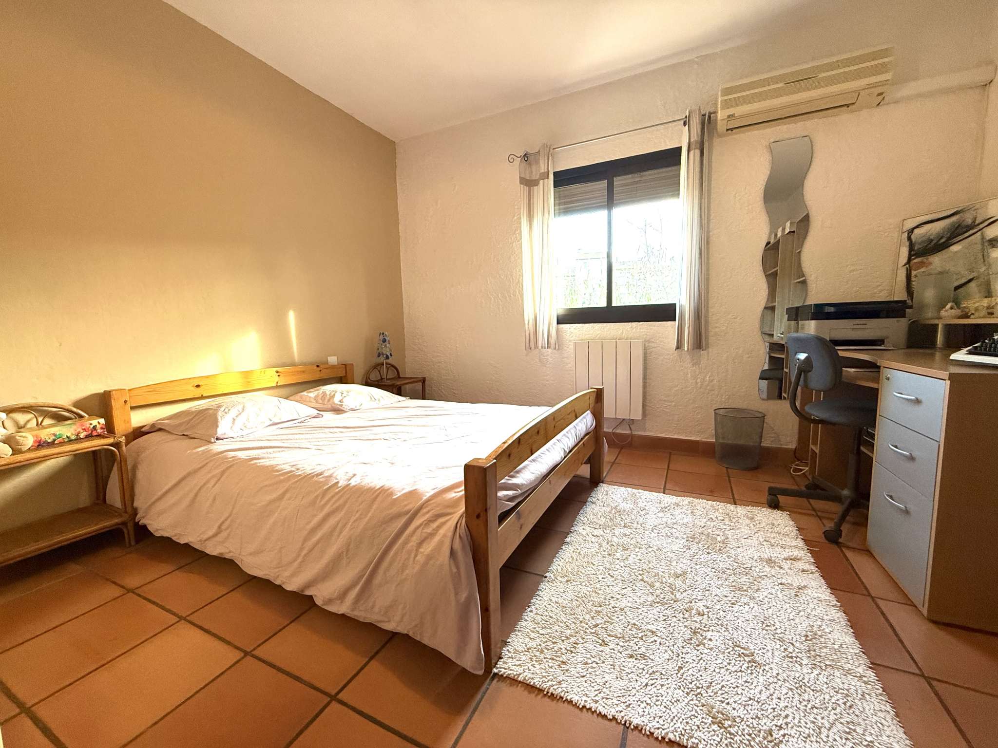 Coté nuit, la villa vous offre deux chambres dont une avec salle d'eau, une salle de bains et un WC indépendant.