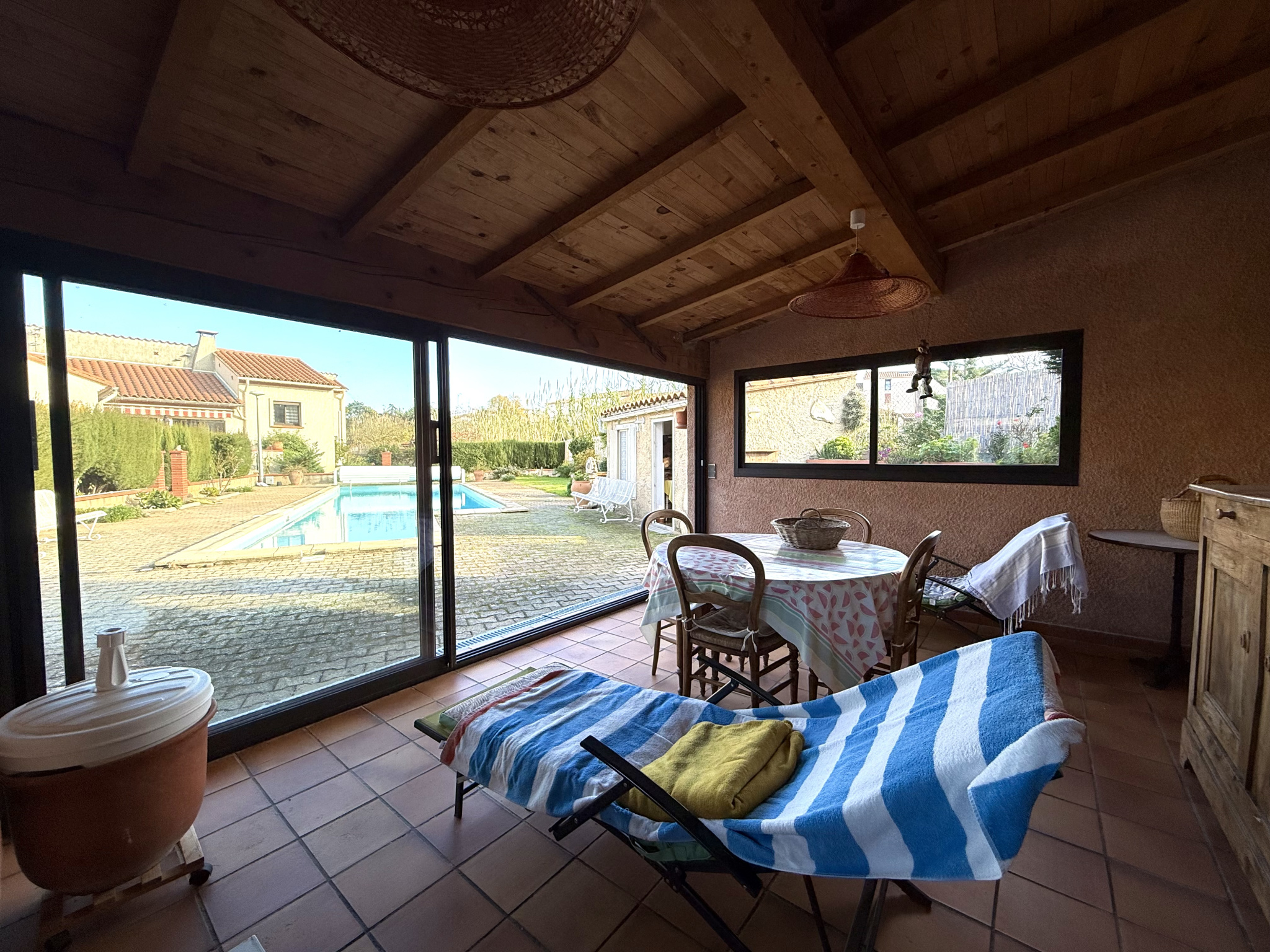 Le jardin est arboré et paysagé et la villa dispose d'une belle PISCINE avec un POOL-HOUSE, une cuisine d'été, un coin barbecue et une dépendance d'environ 11 m2 !