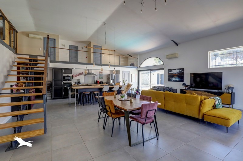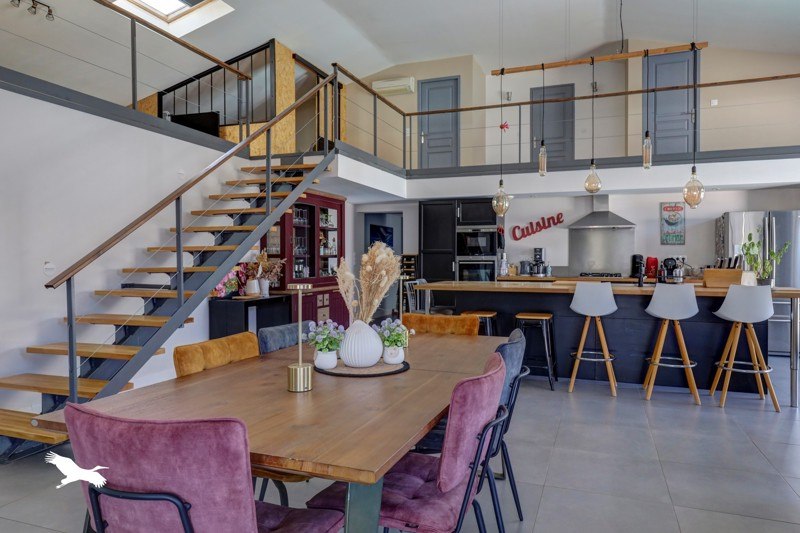 Maison de 150 m² type loft avec un espace de vie baigné de lumière grâce à une grande hauteur sous plafond.Piscine et partie extérieure aménagée qui invite à la détente.Plusieurs chambres dont 1 suite parentale avec grand dressing.