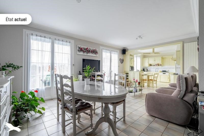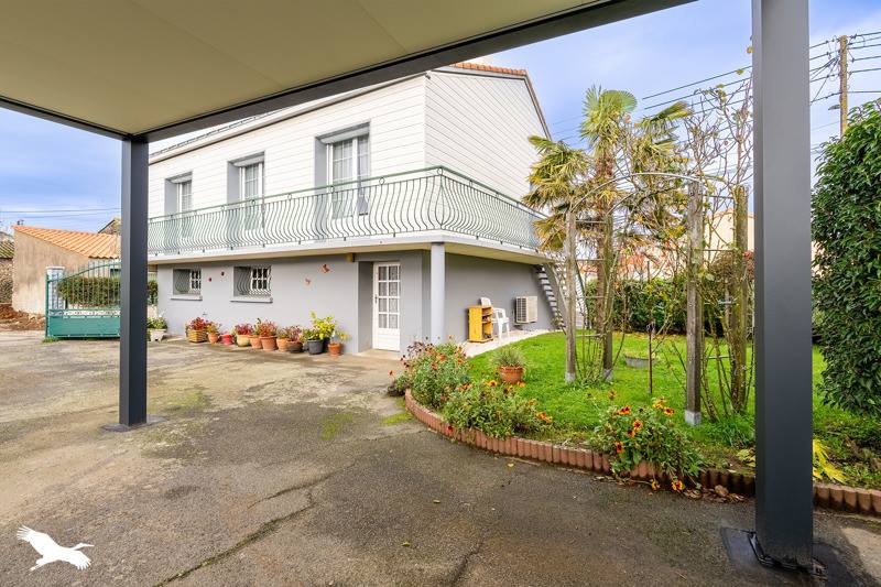 Maison au coeur de Saint-Lumine-de-Coutais, avec cuisine aménagée, salon séjour lumineux avec balcon, trois chambres, salle d'eau, cellier, cave et pièce de réception.
