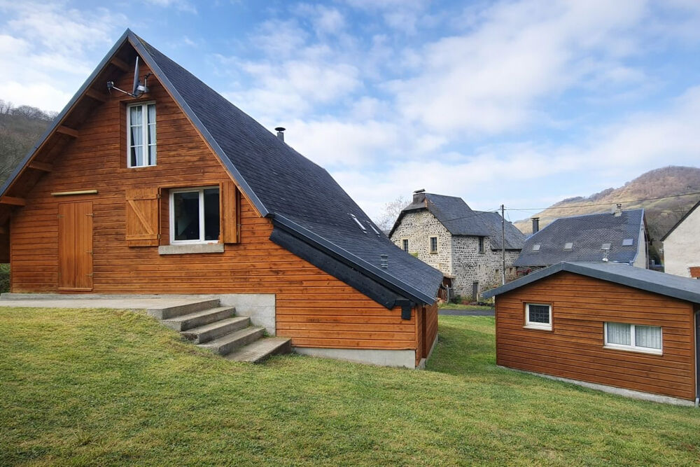 Ancienne grange en pierre, rénovée en type chalet avec bardage bois située dans la région des volcans d Auvergne, à 15min de Besse et Saint Anastaise. Il comprend : Au RDC, un appartement de type F1 : cuisine salon, une chambre, une salle de bain et WC séparé. Au 1er étage : pièce de vie, salle d'eau, WC séparé, 2 chambres. Au 2ème étage : des combles isolées. Un garage pour deux voitures. Un appentis. Un terrain de plus de 500m2 sur lequel se trouve un mobil home de 40m2. En face de la maison, une autre parcelle de terrain de 90m2. Chauffage bois et électrique Les photos ont été désencombrées par l'IA. Une visite virtuelle sur demande par mail est possible sur ce bien.Surface terrain : 640