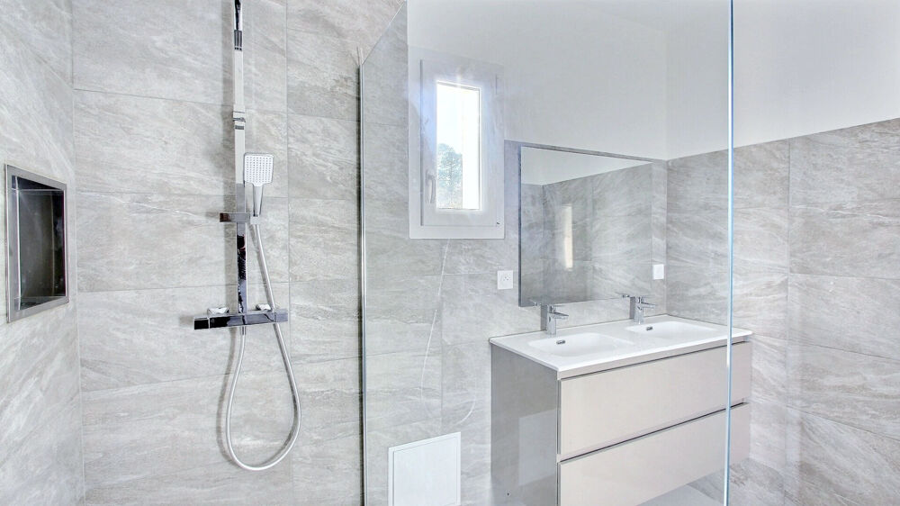 A seulement 6 km de Lorgues, découvrez cette maison NEUVE livrée en 2025, offrant des prestations modernes et un confort exceptionnel au coeur de la Provence Verte. Construite selon les normes RE2020, elle se distingue par sa performance énergétique, la qualité de ses matériaux et ses équipements haut de gamme. Dès l'entrée, vous serez séduit par un séjour baigné de lumière, entièrement climatisé, avec cuisine ouverte pour un espace de vie convivial et contemporain. Le rez-de-chaussée accueille également un WC indépendant ainsi qu'un garage attenant et isolé, facilement aménageable selon vos besoins (buanderie, bureau, atelier?). A l'étage, vous trouverez trois belles chambres de 14 m², toutes climatisées, offrant un confort optimal été comme hiver. Une salle d'eau moderne et un second WC indépendant complètent ce niveau parfaitement agencé. La maison est équipée d'une climatisation réversible dans chaque pièce et d'un ballon thermodynamique assurant une efficacité énergétique remarquable. A l'extérieur, le terrain clos de 500 m², équipé d'un portail électrique, est piscinable et prêt à être aménagé selon vos envies : jardin provençal, espace détente ou piscine. Une opportunité rare pour profiter du confort du neuf dans un cadre paisible et verdoyant, à proximité de toutes les commodités.