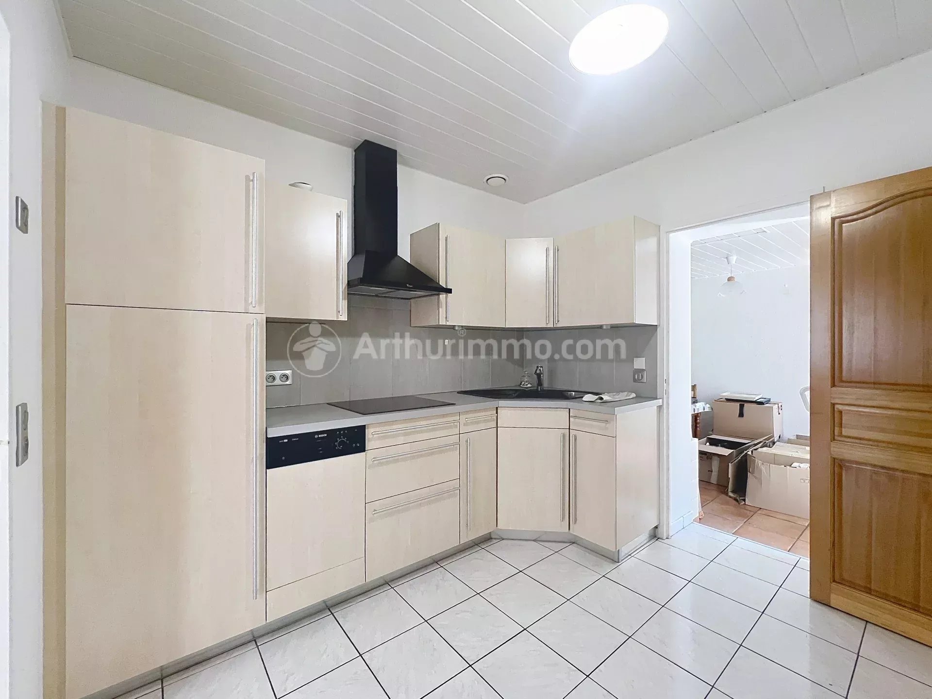 D'une surface habitable d'environ 98 m², elle se compose d'une pièce de vie lumineuse, d'une cuisine équipée donnant sur un espace réception (salon ou cuisine d'été), de 3 chambres, d'une salle d'eau et de toilettes séparées.