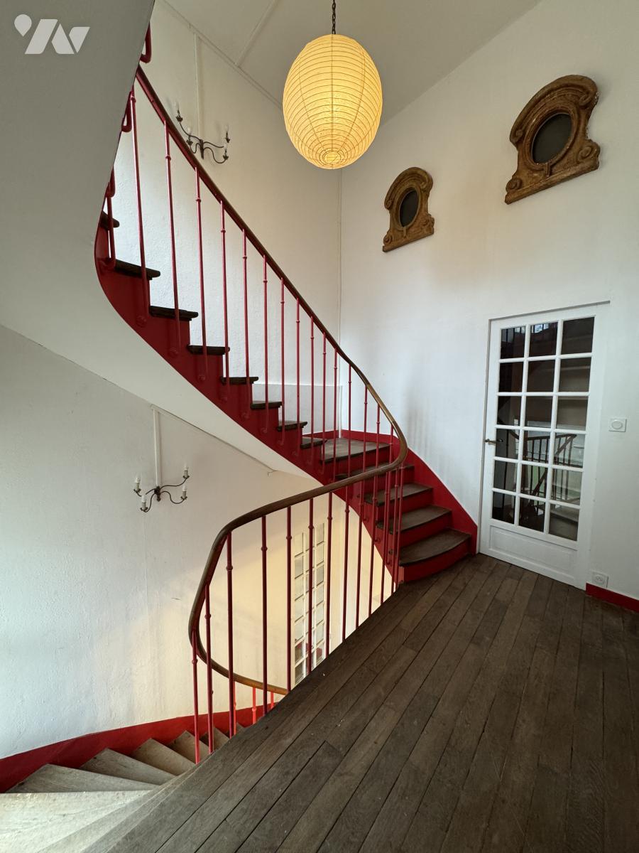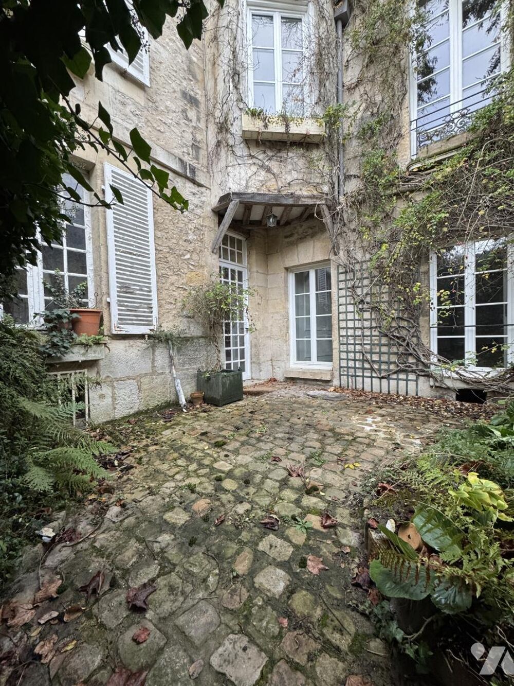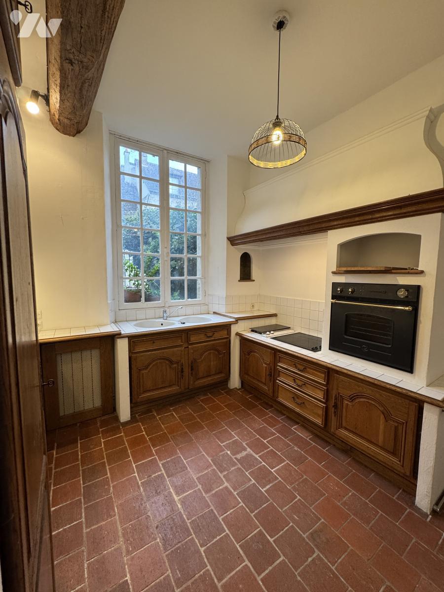 Idéalement située en plein centre ville, avec une jolie cour d'environ 30m² et une terrasse vue sur un jardin arboré.