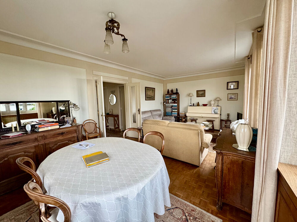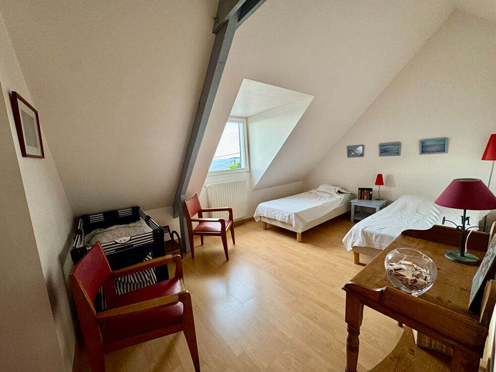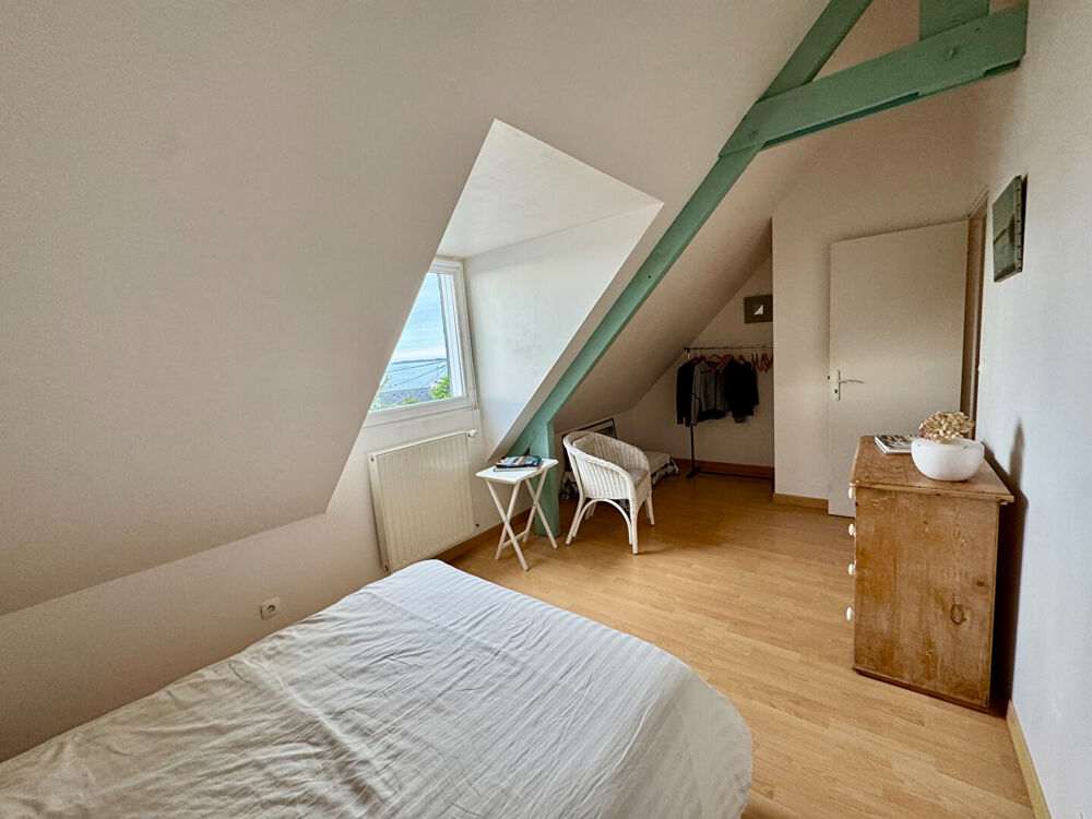 Quartier du Rouz - Vue mer - Jardin plein sud - chemin côtier à pied. Dans le très prisé quartier du Rouz, cette élégante maison des années 1955 offre un cadre de vie rare, conjuguant vue mer, exposition plein sud et environnement calme. Implantée sur un beau jardin ensoleillé, elle séduit par ses volumes généreux, sa luminosité et son potentiel de mise en valeur. Le rez-de-chaussée surélevé s'ouvre sur une entrée raffinée menant à un séjour lumineux, bénéficiant d'une vue dégagée sur la mer. La cuisine aménagée et équipée, prolongée par un espace salle à manger, offre un accès direct au jardin, idéal pour recevoir. Une chambre avec balcon, une salle de bains ainsi que des WC indépendants complètent ce niveau. A l'étage, l'espace nuit se compose de deux belles chambres, d'une salle avec wc et d'un grenier. Le rez-de-jardin propose des espaces complémentaires particulièrement appréciables : garage, chambre avec salle d'eau privative, bureau avec cabinet de toilette, chaufferie, cellier et cave, offrant de multiples possibilités d'aménagement. Le jardin exposé plein sud, à l'abri des regards, invite à la détente dans un cadre résidentiel recherché. Cette propriété représente une opportunité rare pour créer une résidence de caractère à votre image, au coeur de l'un des secteurs les plus cotés du Rouz.