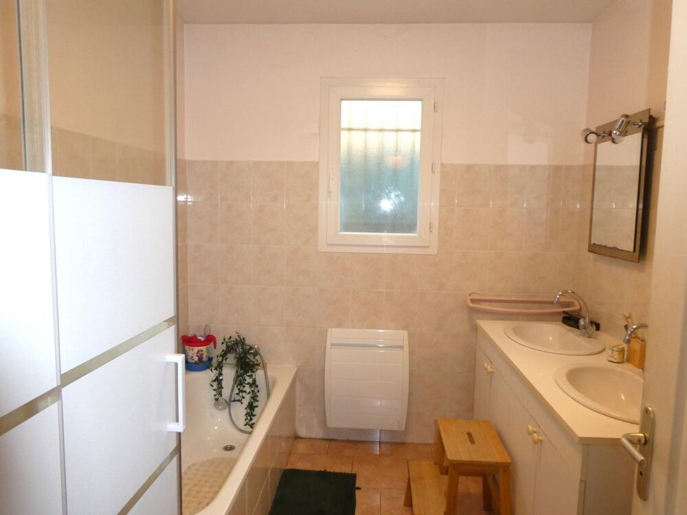 La maison, parfaitement entretenue et très bien équipée, se compose d'une pièce de vie baignée de lumière de plus de 36 m² (cuisine US équipée donnant sur le séjour) avec cheminée à insert, de 3 chambres, toutes équipées de placards, d'une salle de bains (baignoire + douche à l'italienne), et d'un WC indépendant.