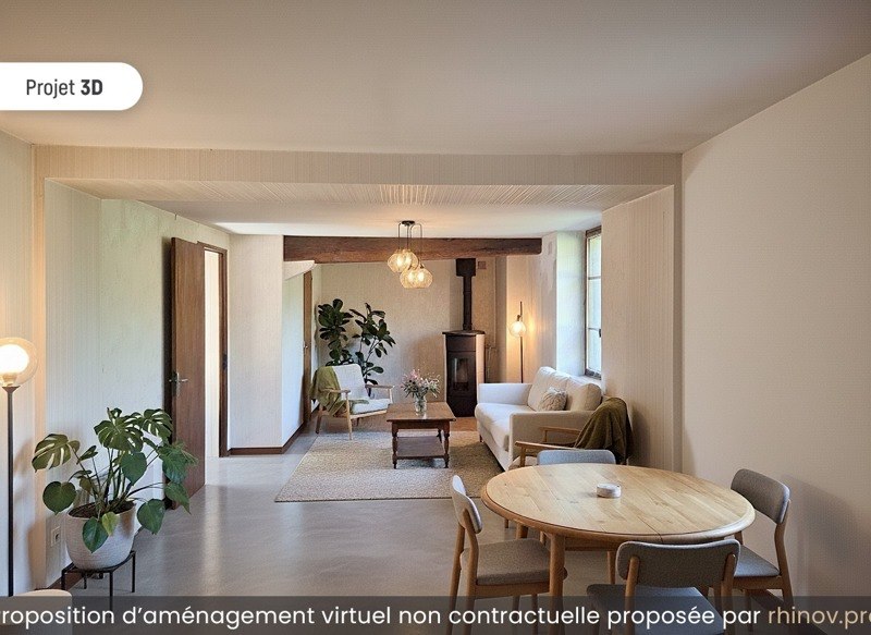 Elle se compose de trois chambres et d?un séjour lumineux agrémenté d?un poêle à pellets, avec possibilité d'agrandissement par le grenier.