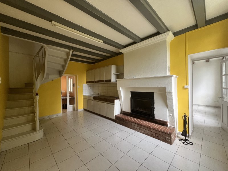 Maison en pierre à rafraîchir, comprenant entrée, cuisine, salle d'eau, wc, séjour, palier avec deux chambres, wc.